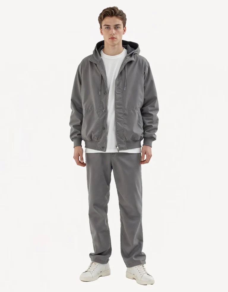 This bomber jacket combines a sleek zip-up design with ribbed cuffs and hem for a structured yet comfortable fit. Ideal for casual wear, it adds a modern touch to any outfit while ensuring warmth and versatility.